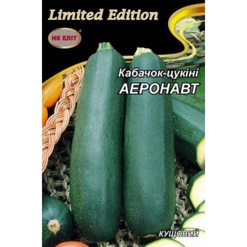 Кабачок Аеронавт - скоростиглий високоврожайний кущовий сорт, 40-45 днів до дозрівання. Плоди темно-зелені, циліндричної форми, масою до 1,3 кг. М'якоть білувато-жовта, солодка, хрустка, соковита. Урожайність до 5 кг / м 2 . Відносно стійкий до хвороб. Використовують молоді плоди для консервування і домашньої кулінарії